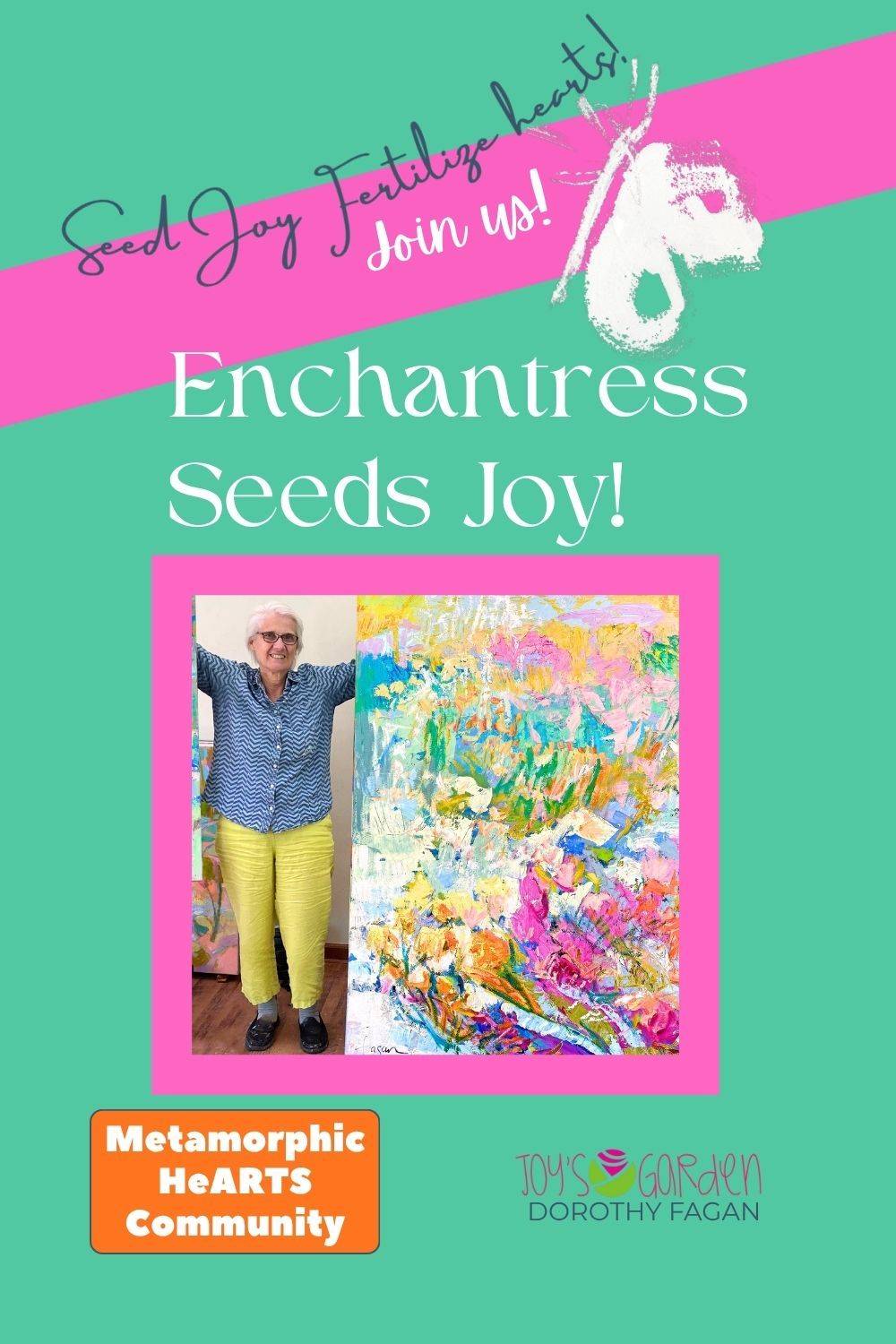 Support Dorothy Fagan’s mission of seeding joy with heARTS! As an enchantress, you’ll plant joy and plot blessings. You'll fertilize blossoms in the meadow of life for youself and those in your garden.